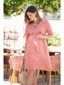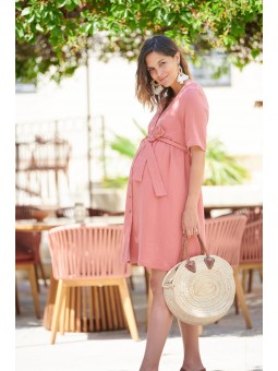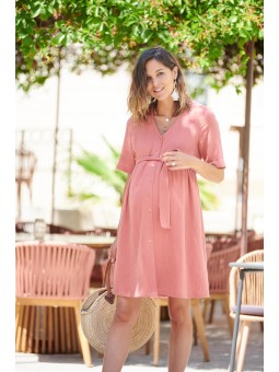Jolie robette chemise d'été 100% en gaze de coton, une matière légère et respirante, parfaite pour les beaux jours. Sa coupe cintrée sous la poitrine mettra en valeur vos jolies formes, enceintes ou non. Grâce au boutonnage sur l'avant, vous la porterez également si vous souhaitez allaiter en toute simplicité.