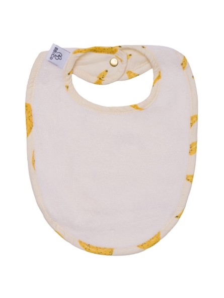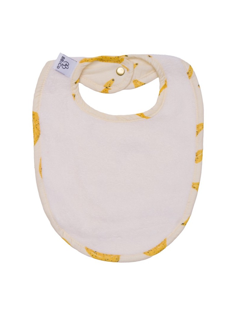 Un grand bavoir réversible avec une face en éponge absorbante et une face en popeline de coton imprimée pour des repas toujours stylés ! Fermeture réglable par boutons pression.