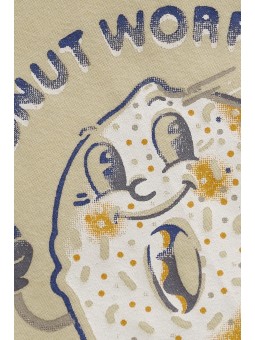 Tee-shirt bébé garçon Noppies en coton bio GOTS, doux et pratique. Fermeture pression à l’encolure, imprimé rigolo, parfait pour les tenues du quotidien.