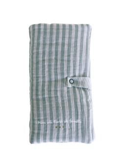 Sublimez et protégez vos documents familiaux avec ce protège-livret de famille en double gaze de coton rayée. Délicatement ouatiné, cet accessoire raffiné est le compagnon idéal pour conserver précieusement le récit de votre histoire familiale.