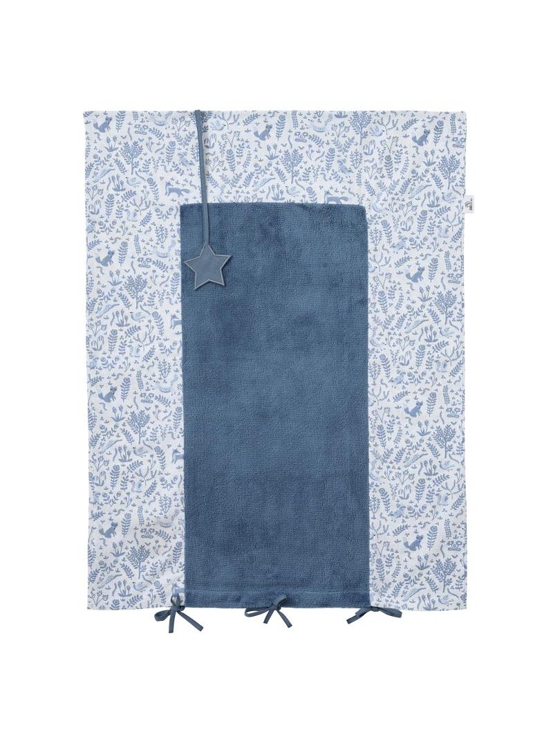 Cette housse pour matelas à langer est fabriquée en popeline pur coton et équipée d'un empiècement en éponge au centre. Ses dimensions et son système de fermeture à nouettes à la base lui permettent de s'adapter à la majorité des matelas à langer.