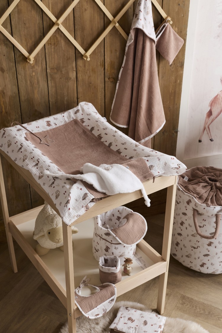 La collection "Cosy Forest" insuffle une poésie naturelle et sauvage à la chambre de bébé. Avec ses adorables animaux des bois et ses teintes chaleureuses de terre cuite et de mocha, cette décoration inspirée de la forêt crée une atmosphère réconfortante et protectrice. Véritable invitation à l'imaginaire, elle combine l'authenticité de la nature avec une élégance douce pour un univers harmonieux et serein.