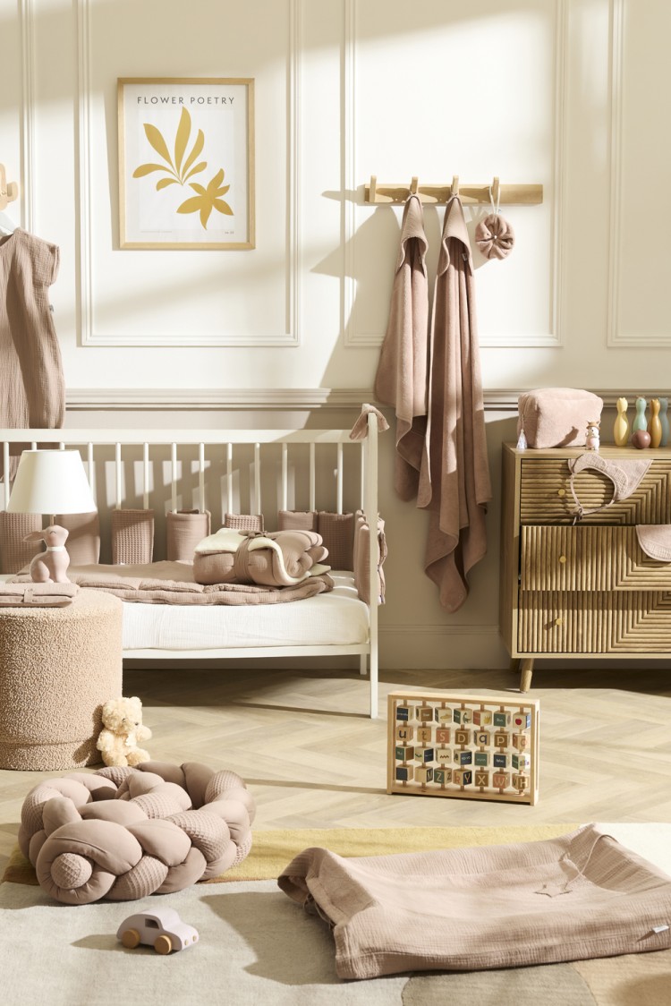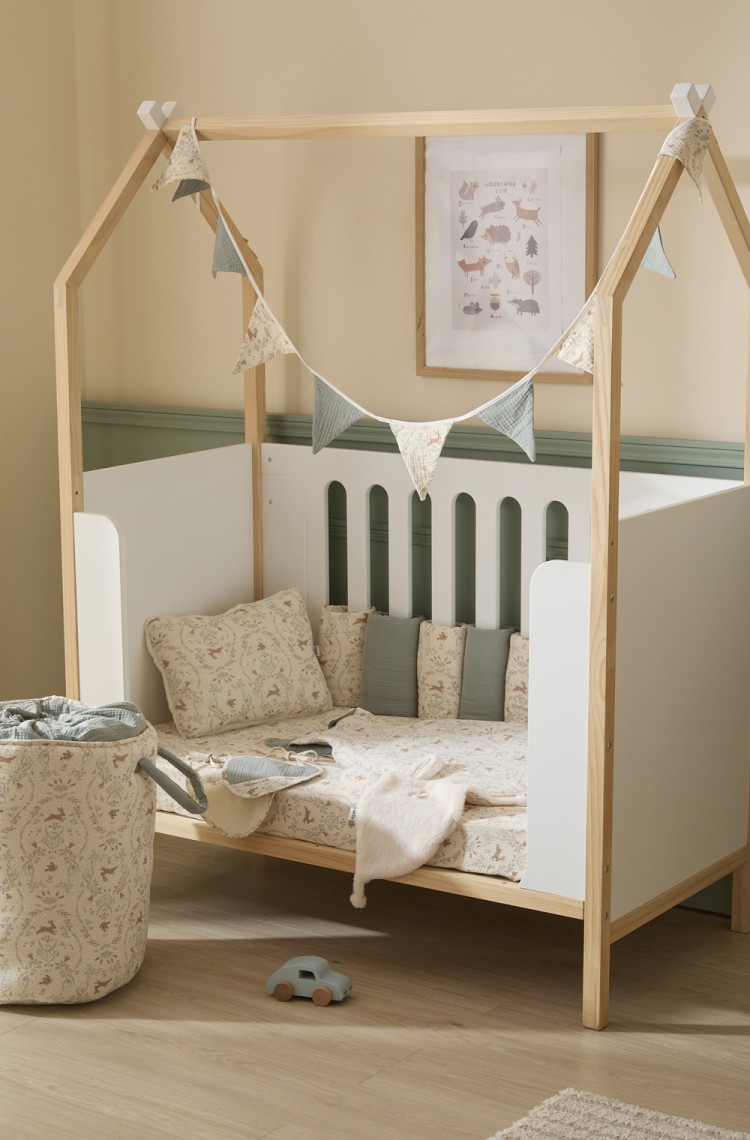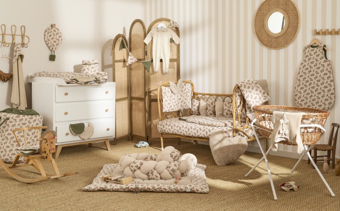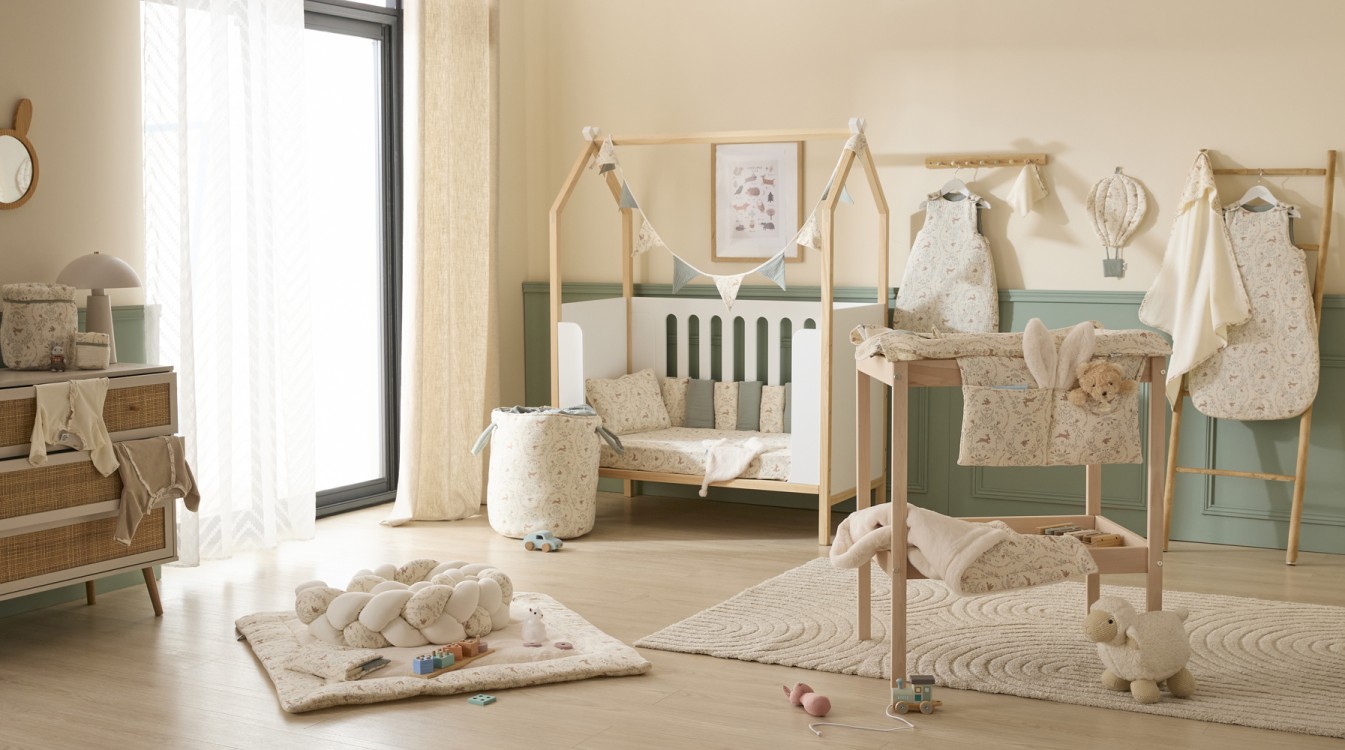 La collection "Enchanted Garden" apporte une touche de féerie et de raffinement à la chambre de bébé. Avec ses teintes délicates de biscuit, mousse de lait et vert de gris, cette décoration inspirée d’un jardin secret crée une atmosphère apaisante et imaginaire. Portée par une poésie visuelle subtile, elle combine la douceur des matières et une élégance naturelle pour un univers harmonieux et protecteur.